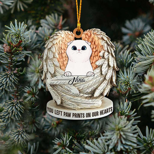 You Left Paw Prints On My Heart - Personalized Christmas Cat Transparent Ornament