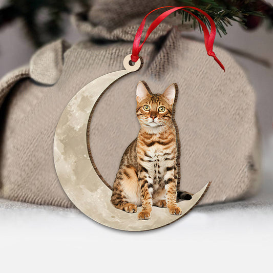 Bengal Cat Sits On The Moons - Cat Ornament (Printed On Both Sides) 1022