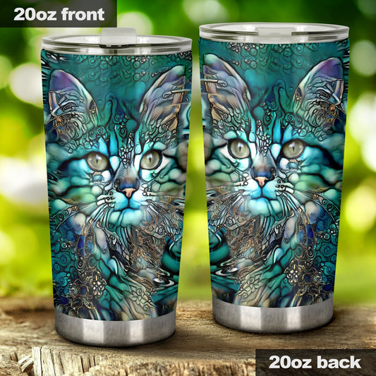 Meowy Christmas Faux Glitter Print Cat Tumbler 0622