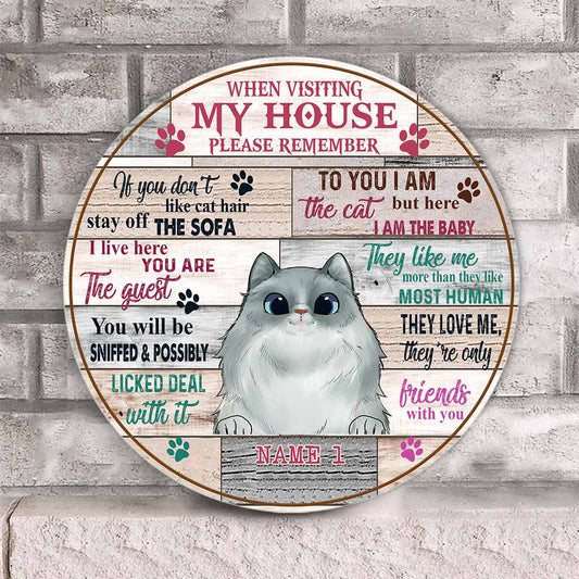 When Visiting Cat House Please Remember - Personalized Cat Round Wood Sign