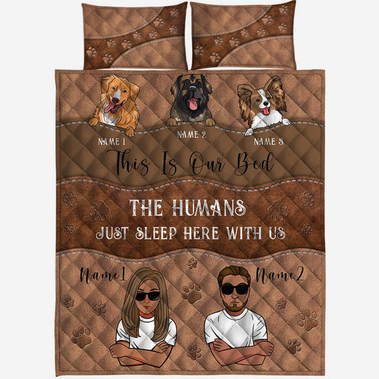 This Is Our Bed The Humans Just Sleep Here With Us - Personalized Dog Quilt Set