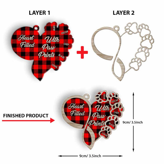 Heart Filled With Paw Prints - Personalized Dog Layered Wood Ornament