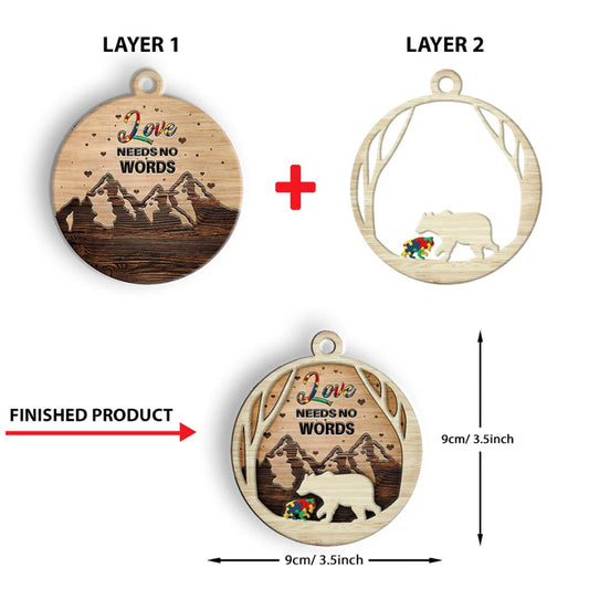 Love Needs No Words - Personalized Autism Awareness Layered Wood Ornament