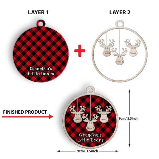 Nana Little Deers - Personalized Christmas Grandma Layered Wood Ornament