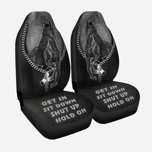Get In Sit Down Shut Up Hold On - Horse Seat Covers With Leather Pattern Print