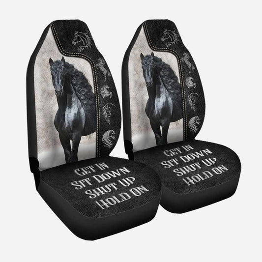 Get In Sit Down Shut Up Hold On - Horse Seat Covers With Leather Pattern Print