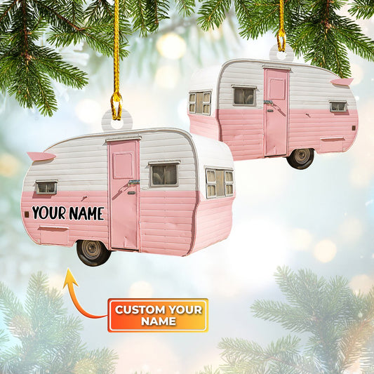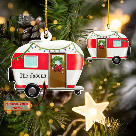 Red Camping Car Christmas Decor - Personalized Camping Ornament (Printed On Both Sides) 1022