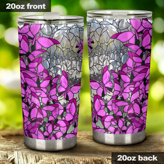 Faith Hope Love Stained Glass Pattern Print Breast Cancer Awareness Tumbler 0622