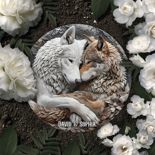 Wolf Couple - Personalized Wolf Round Shaped Stone