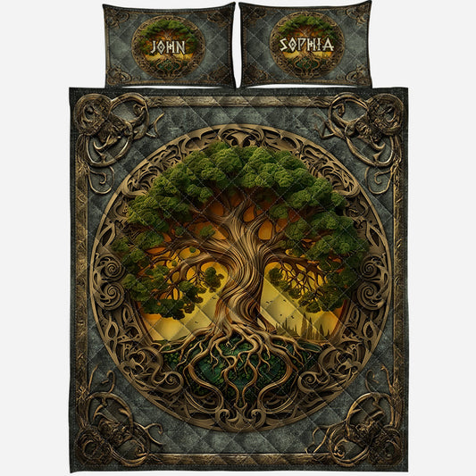 Tree Of Life Scandinavian Mythology Rustic Style - Personalized Irish Quilt Set