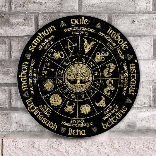 Wheel Of The Year Wicca - Witch Shaped Plaque Light Base