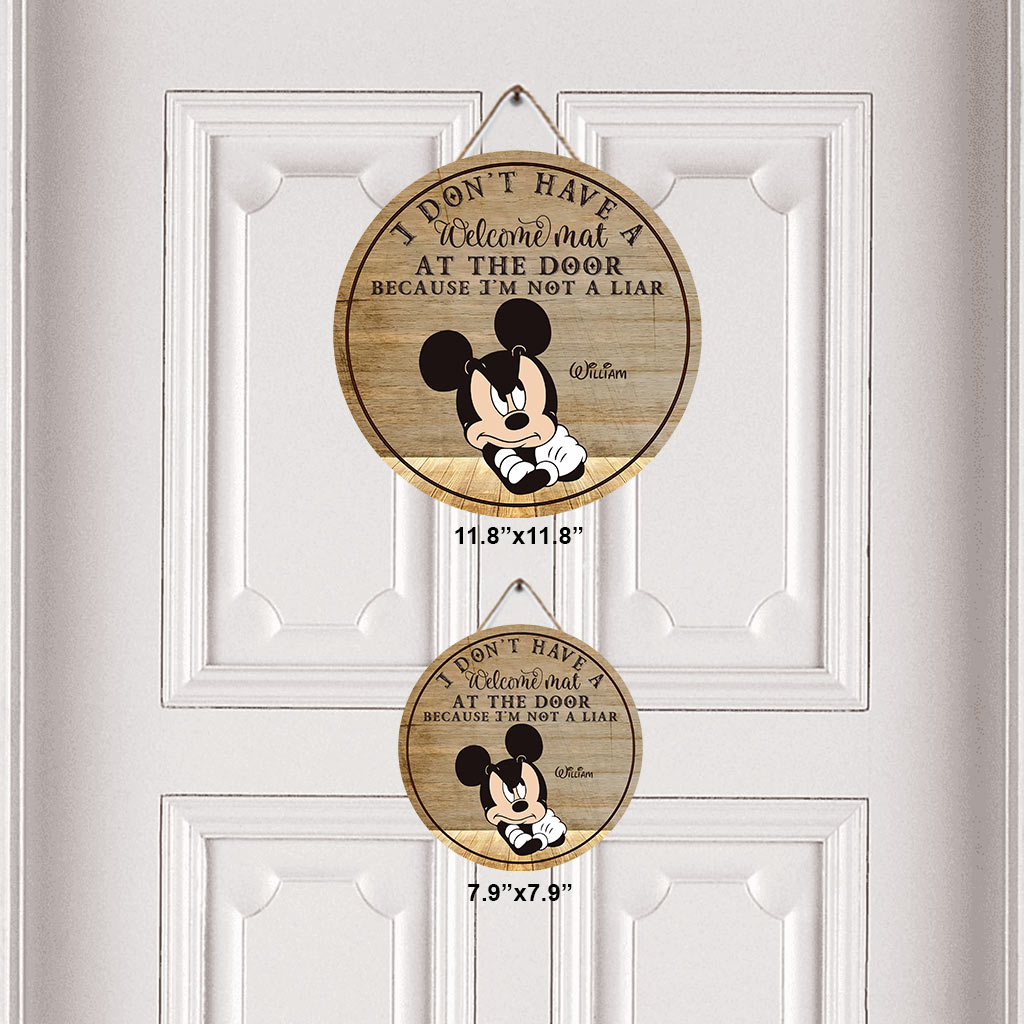 I Don't Have A Welcome Mat At The Door - Personalized Mouse Round Wood Sign