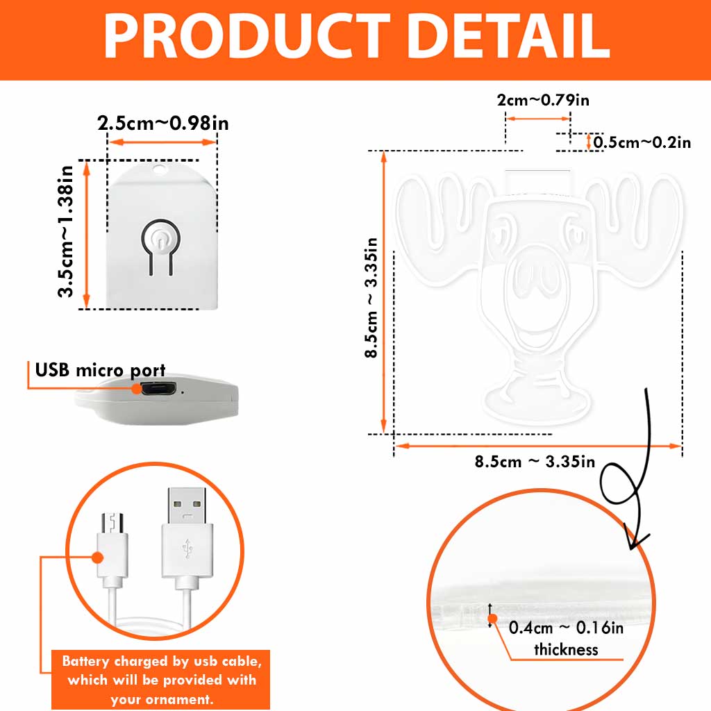 - Our LED ornaments are cool to the touch which makes them safe for little fingers and are rechargeable with the USB charging cable, which will be provided with your Christmas bauble (4-6 hours battery life).