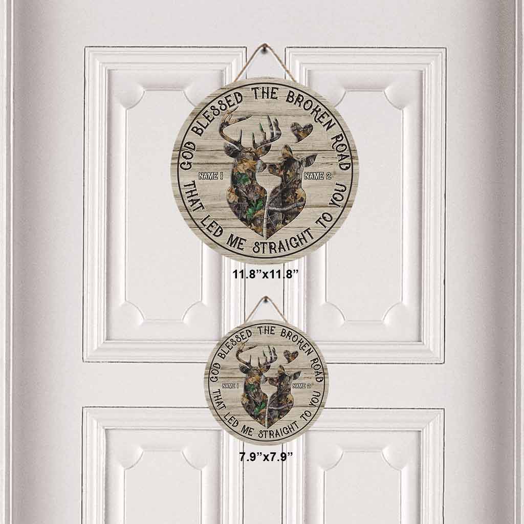 God Blessed The Broken Road That - Personalized Hunting Round Wood Sign