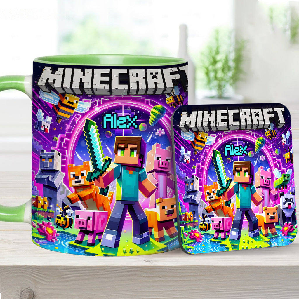 • High quality ceramic mug with two-tone rim, interior, & handle