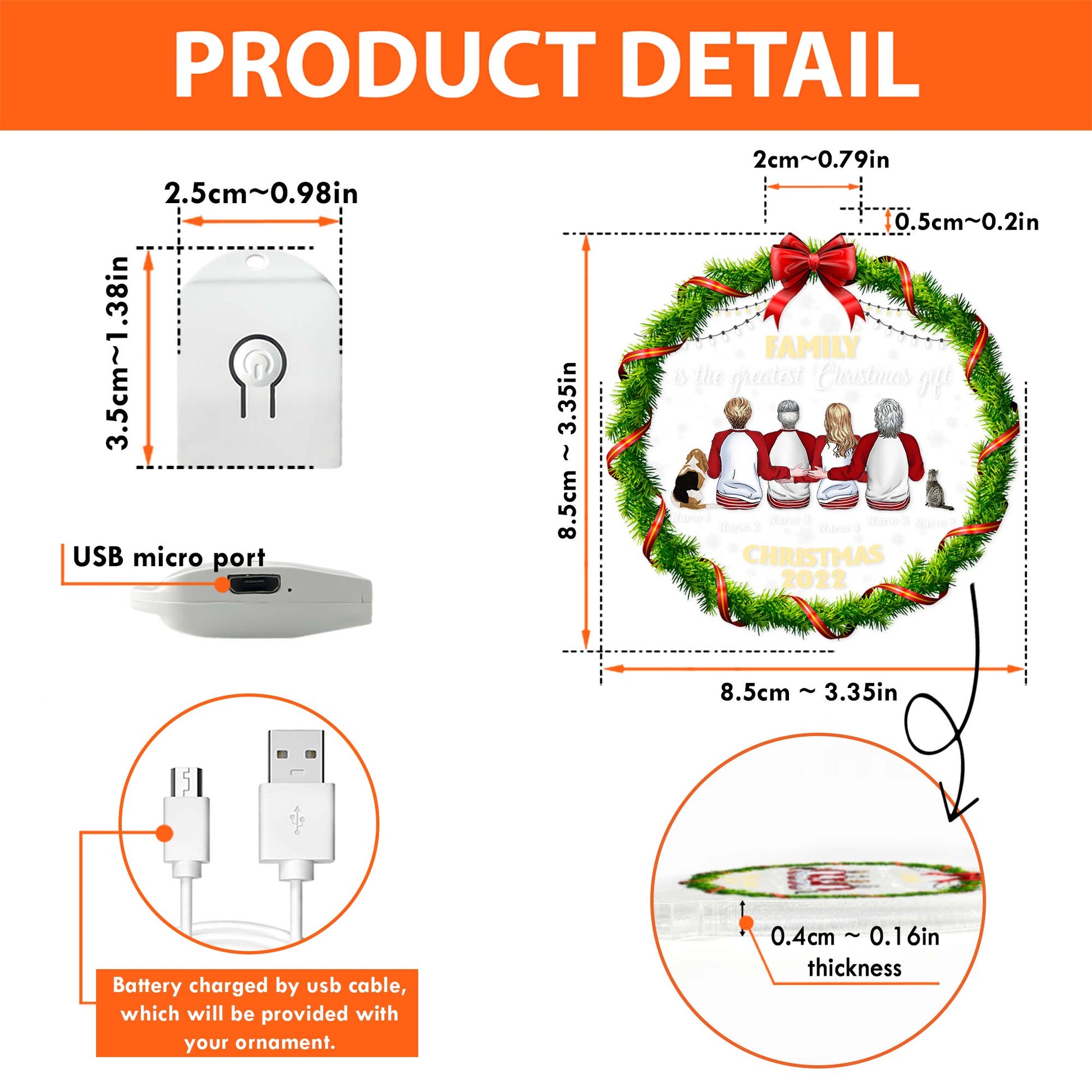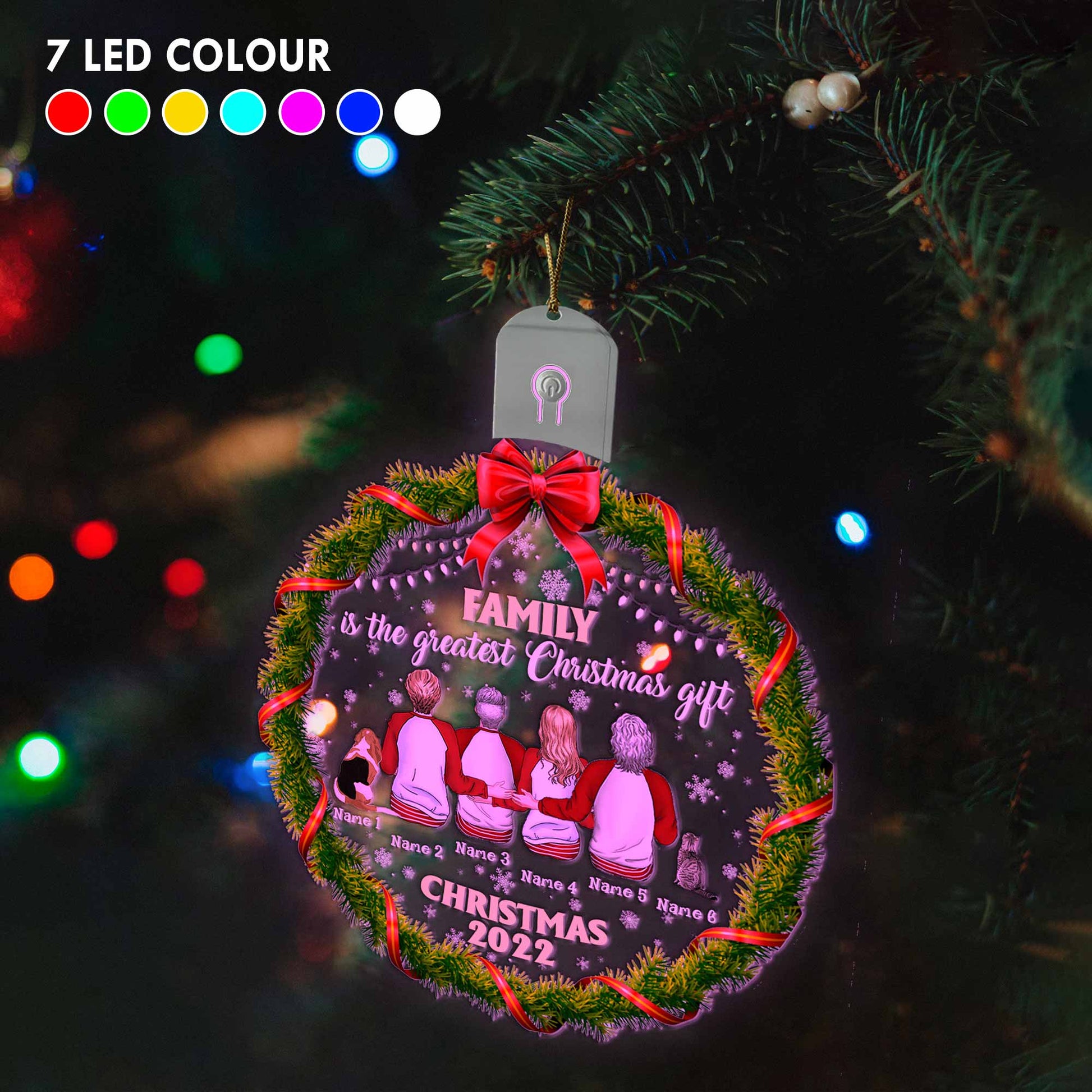 Family Is The Greatest Christmas Gift - Personalized Christmas Family Round Led Acrylic Ornament