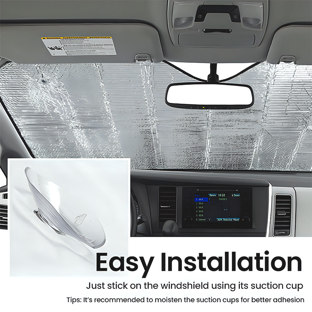 - Fits most cars, trucks, and SUVs Provides protection against UV rays and sun damage while reducing interior heat – no more fading & heat damage Constructed from a high-quality double-insulated laminate material.