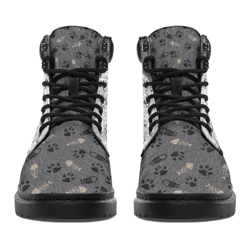 Kitten Leather Pattern Print Cat All Season Boots 0622