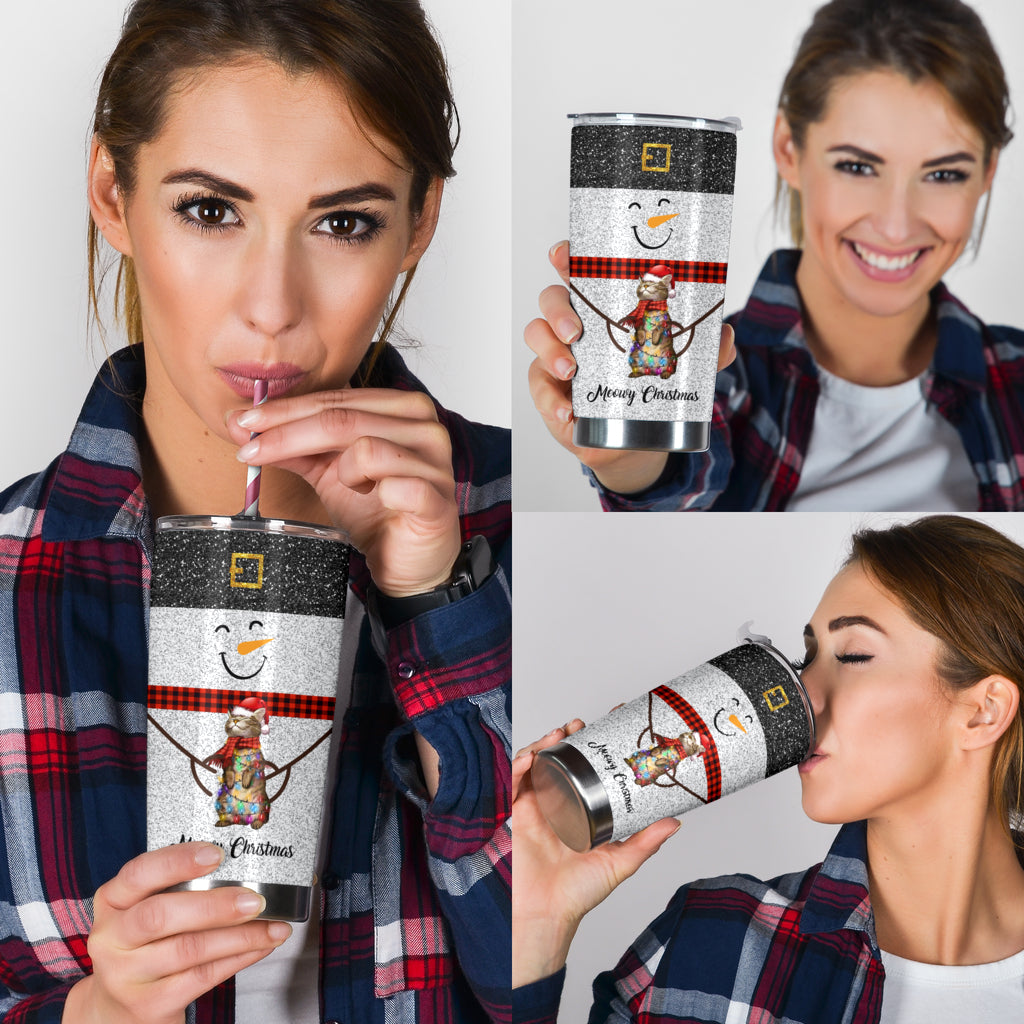 Meowy Christmas Faux Glitter Print Cat Tumbler 0622