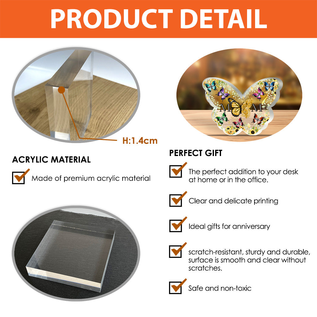 Mother And Children Floral Butterflies - Personalized Gift For Mother Custom Shaped Acrylic Plaque