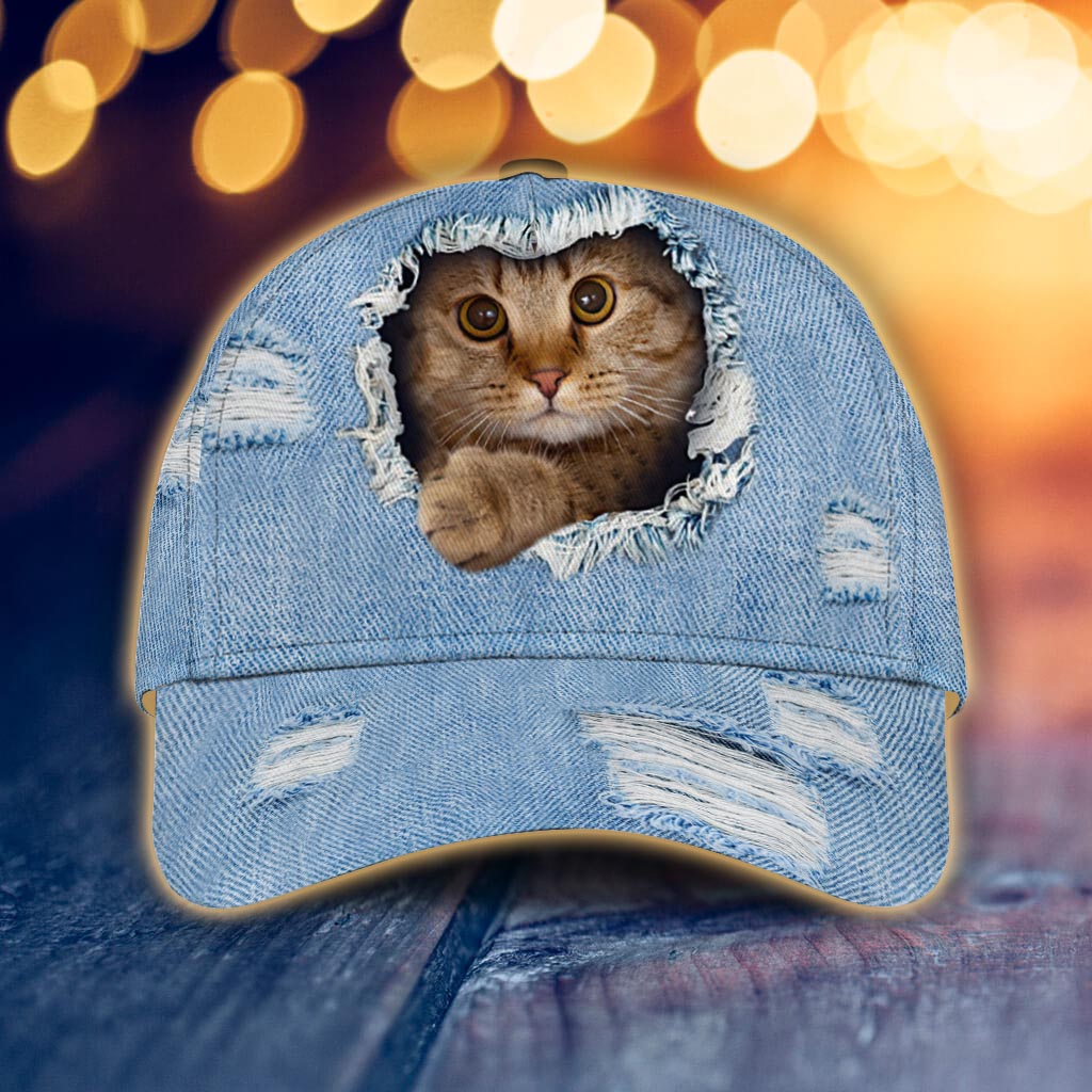 Peeking Cat Denim Pattern Print Cat Classic Cap 0622