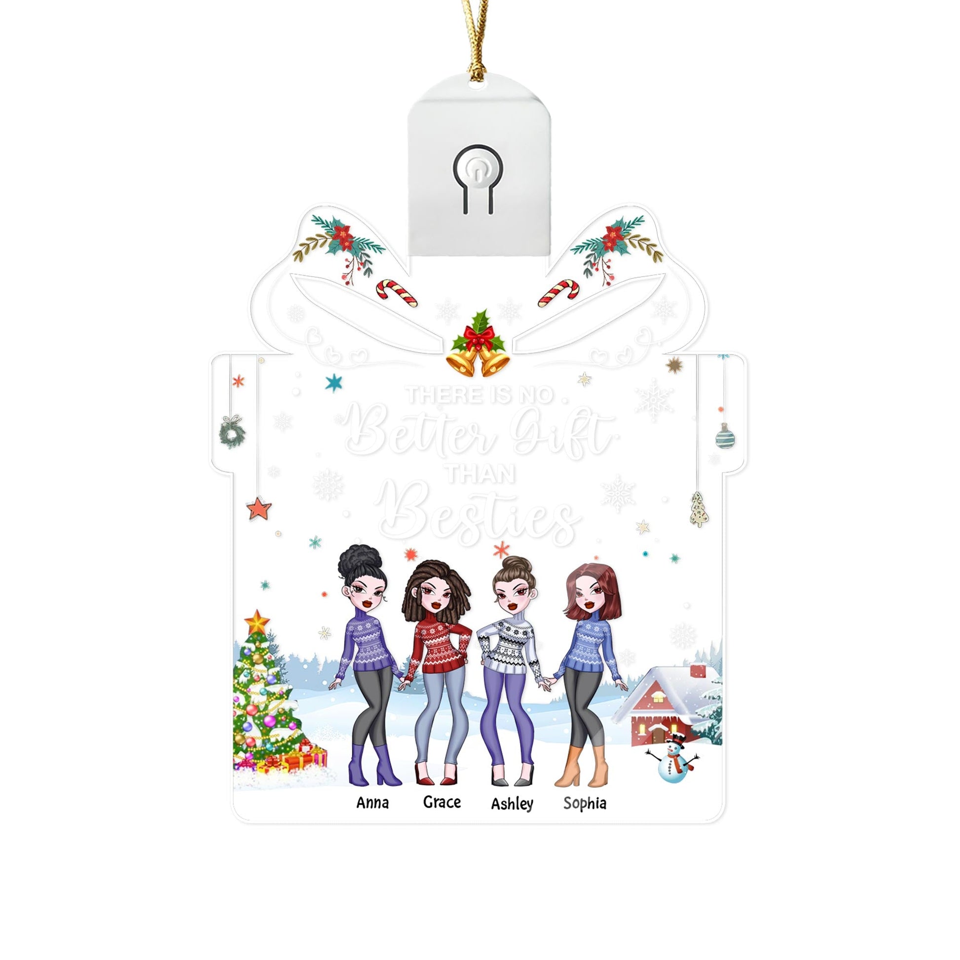 There Is No Better Gift Than Besties - Personalized Christmas Bestie Shaped Led Acrylic Ornament