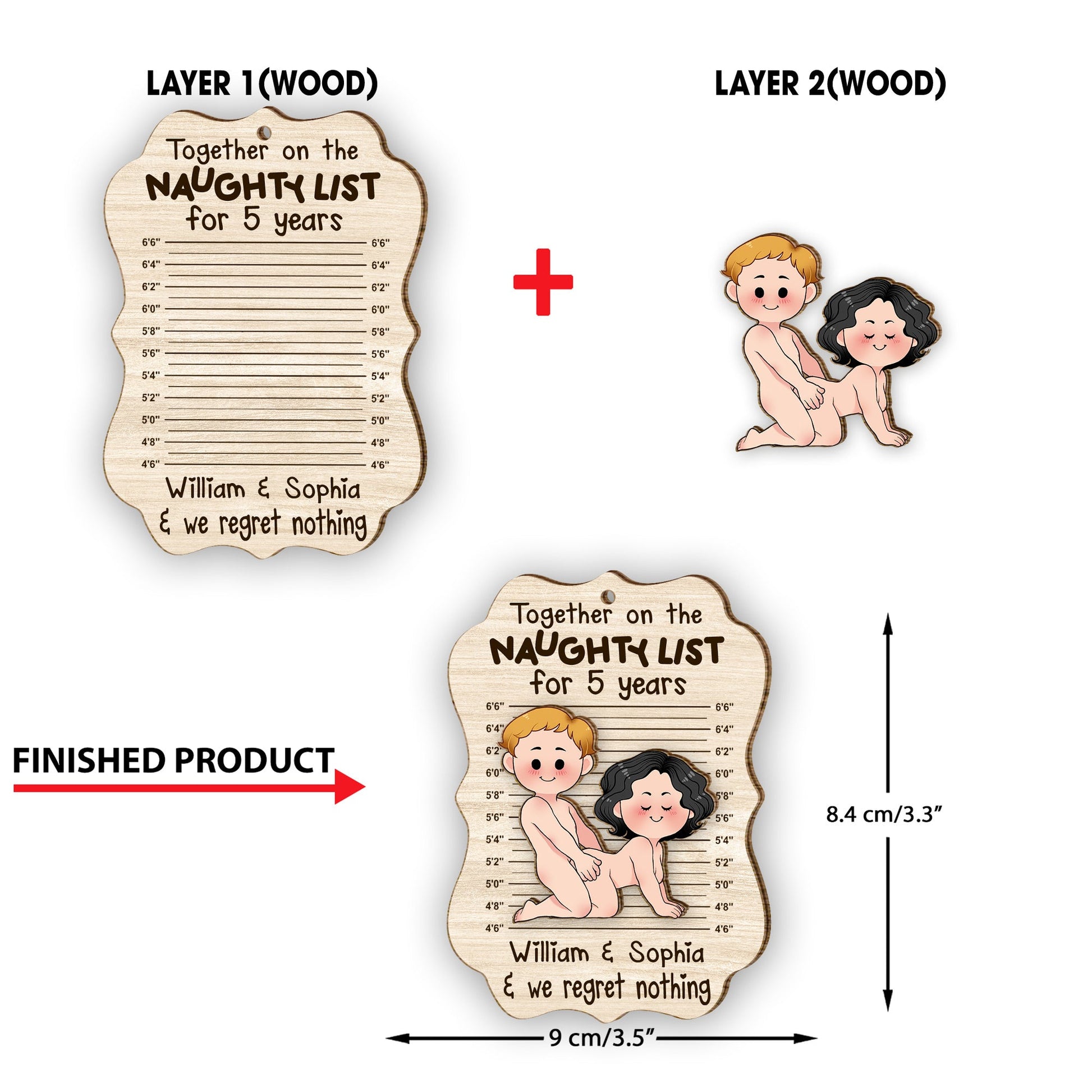 Together On The Naughty List - Personalized Couple 2 Layered Piece Ornament