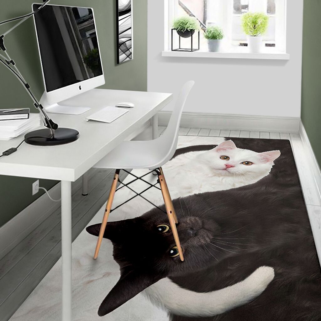 Yin Yang Cats Fur Pattern Print Cat Rug 0622