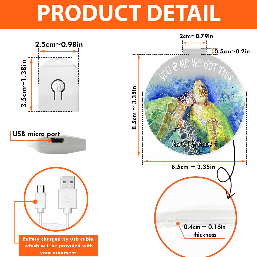 You And Me We Got This - Personalized Christmas Turtle Round Led Acrylic Ornament